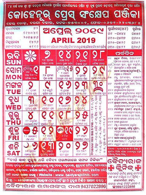 Order Online Kohinoor Press Odia Calendar for the Year ...